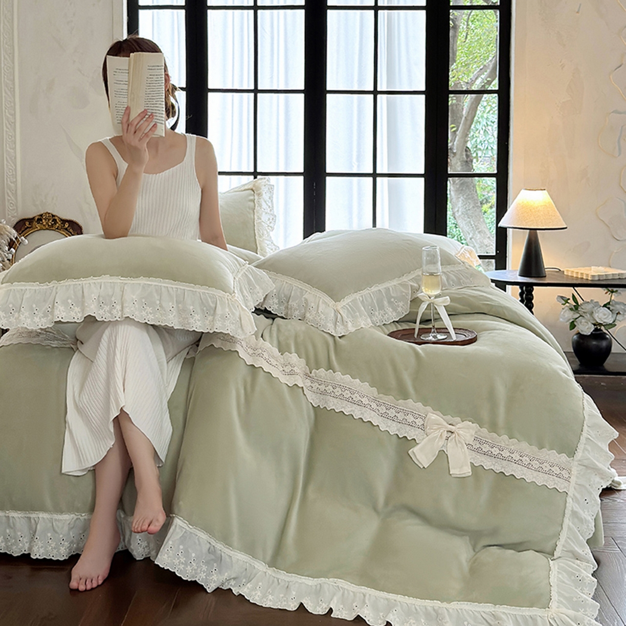 当前位置: 乐朵家居> 产品中心 > 安娜 牛奶绒 床单款夹棉床盖四件套