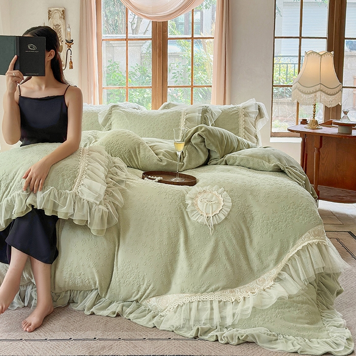 当前位置: 乐朵家居> 产品中心 > 法兰花都 牛奶绒 床单款夹棉床盖四件套