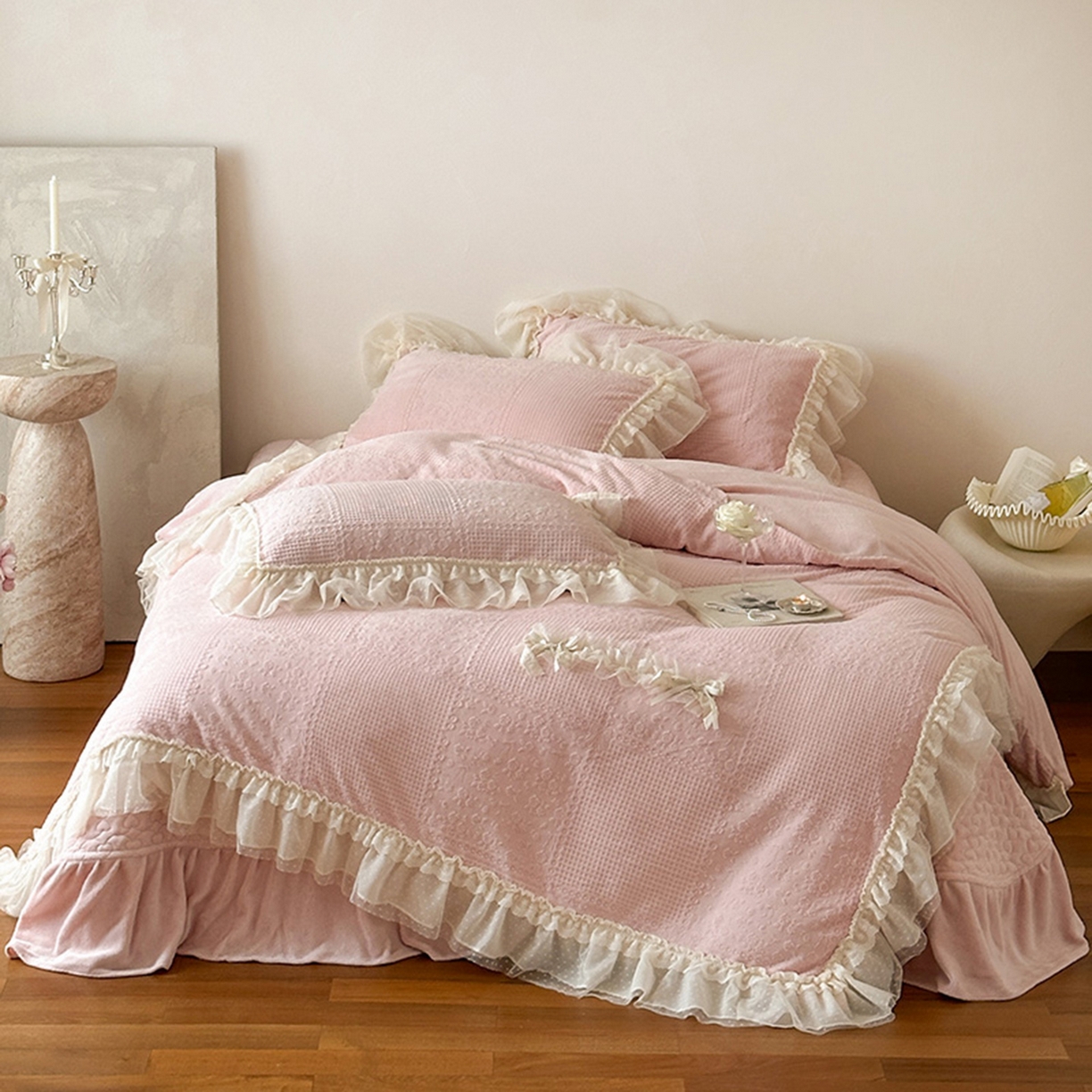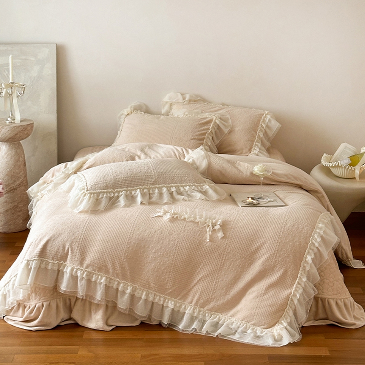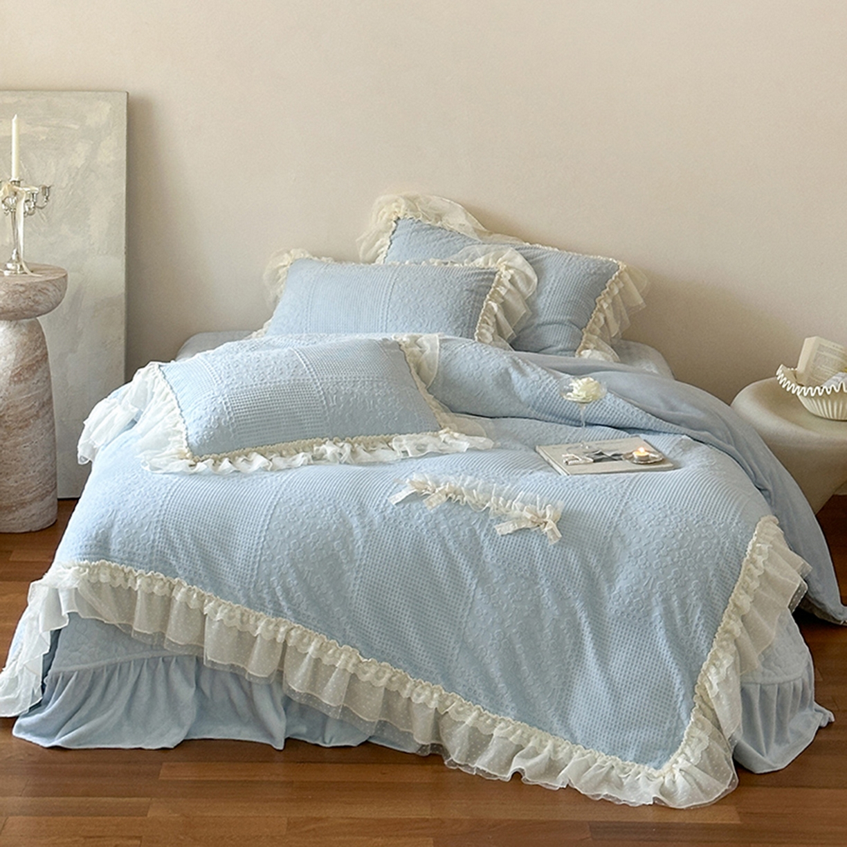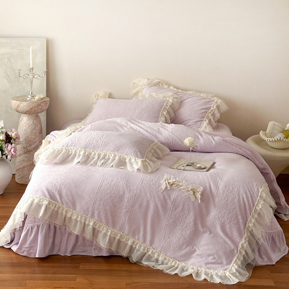 当前位置: 乐朵家居> 产品中心 > 舒芙蕾 牛奶绒 床单款夹棉床盖四件套