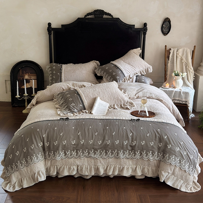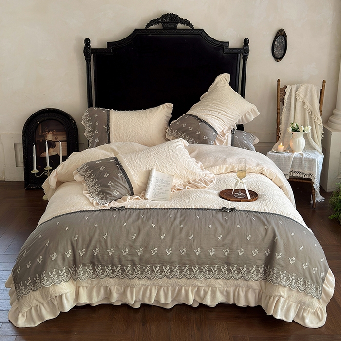 当前位置: 乐朵家居> 产品中心 > 欧梵 牛奶绒 床单款夹棉床盖四件套